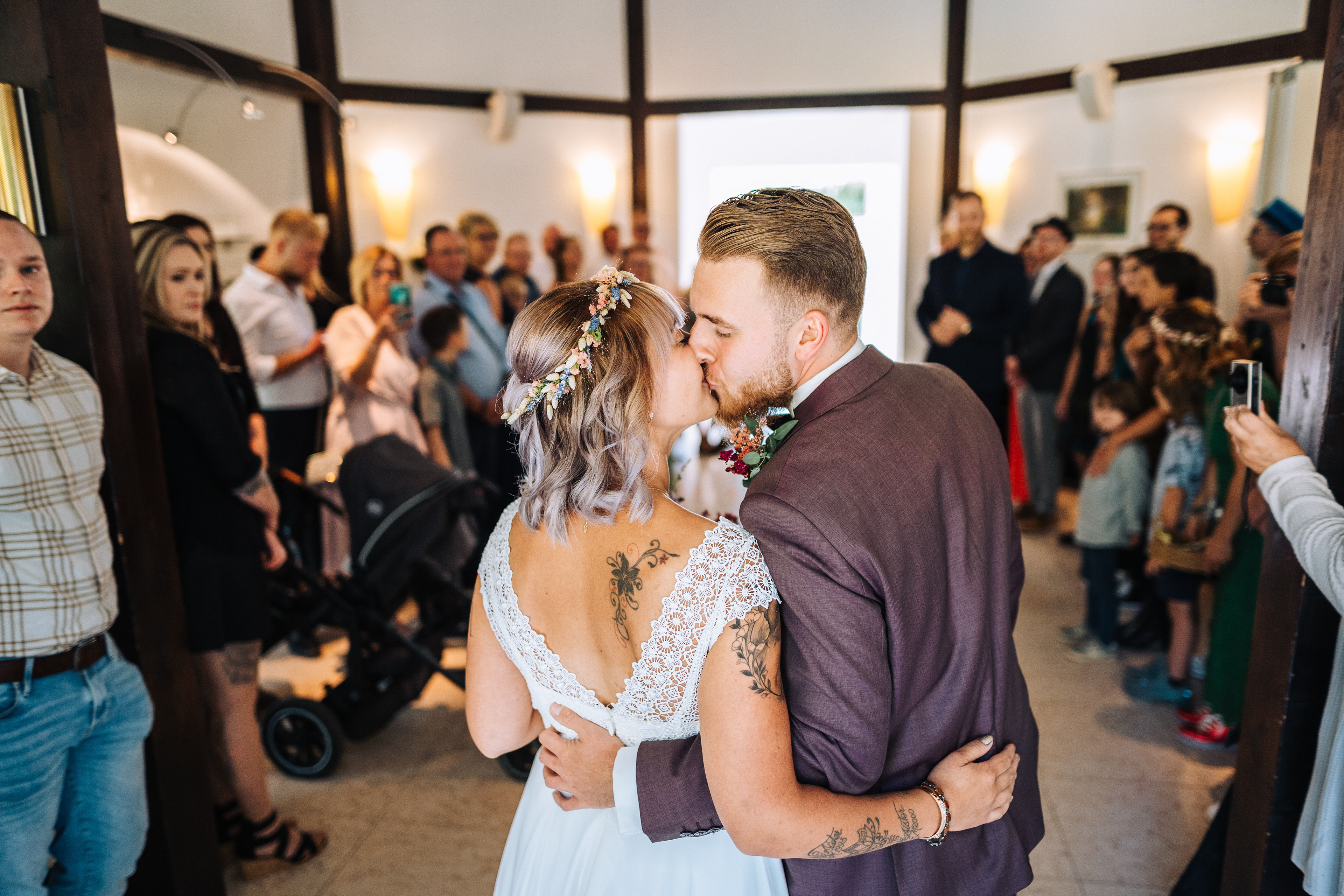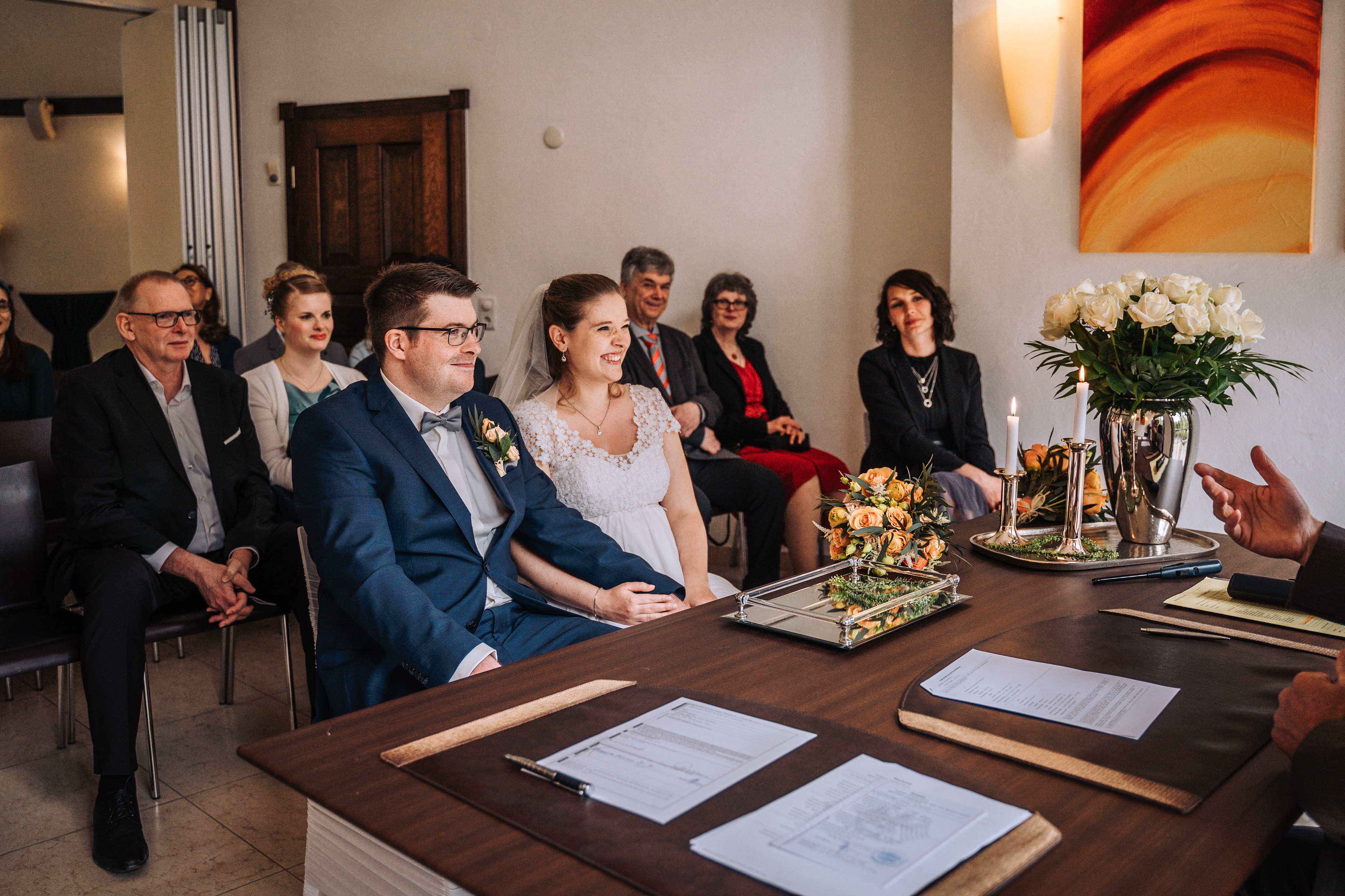 Ihr findet dort sicher für alle Gäste Platz, die euch bei eurer standesamtlichen Trauung im Lür-Kropp-Hof begleiten wollen. Und ihr müsst euch nicht wegen des Zeitplans stressen. Nach der Trauung ist ausreichend Zeit (und Platz! ;-)) für einen Sektempfang, die Gratulationen und Gruppenbilder direkt vor dem Meta-Rödiger-Hochtiedshuus.