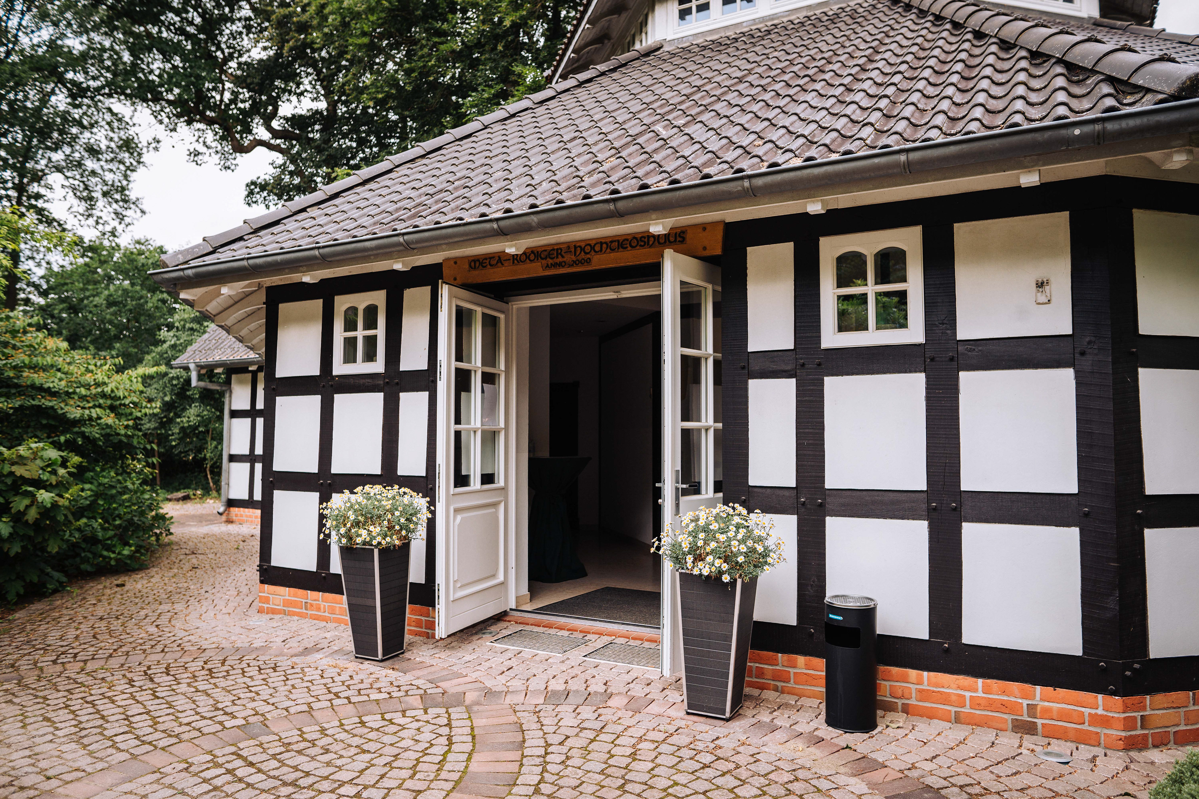 Standesamtliche Trauungen auf dem Lür-Kropp-Hof in Bremen finden immer in einem schönen kleinen Fachwerkhäuschen auf dem Gelände statt: dem Meta-Rödiger-Hochtiedshuus. Außen bietet es eine schöne Fachwerkfassade und drinnen einen hellen, schlichten Stil.
